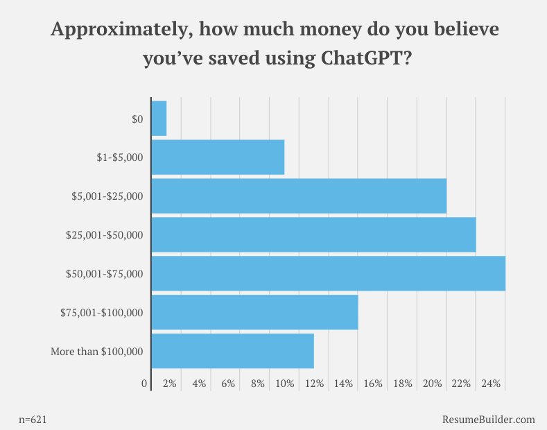 25% 使用 ChatGPT 的公司已经节省了 7.5 万美元以上;