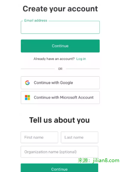 2、接着输入 Email 账号,或者可以通过Google 账号或是 Microsoft 账号进行注册登入。