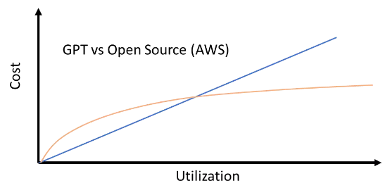也就是说,在 AWS 上托管像 Flan-UL2 这样的开源大模型,每天 1000 请求时的成本为 150 美元,每天 150 万请求则为 160 美元。