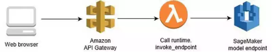 当客户端对 API Gateway 执行 API 调用时就会触发 Lambda 函数,并在完成函数解析之后将其发送至 SageMaker 端点。之后由模型端点执行预测,把信息发送至 Lambda。Lambda 再做解析,将结果发送至 API 并最终返回至客户端。
