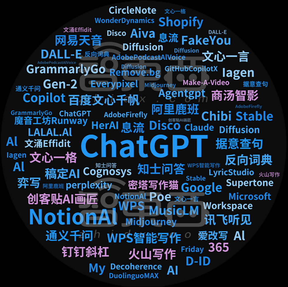 ▲词云图展示了围绕ChatGPT,