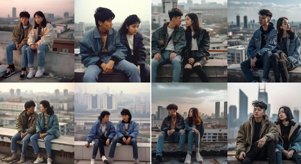 ▲一组由Midjourney自动生成的复古情侣写真