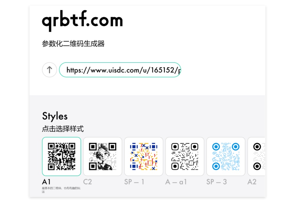 - 二维码生成器 ①: https://qrbtf.com/