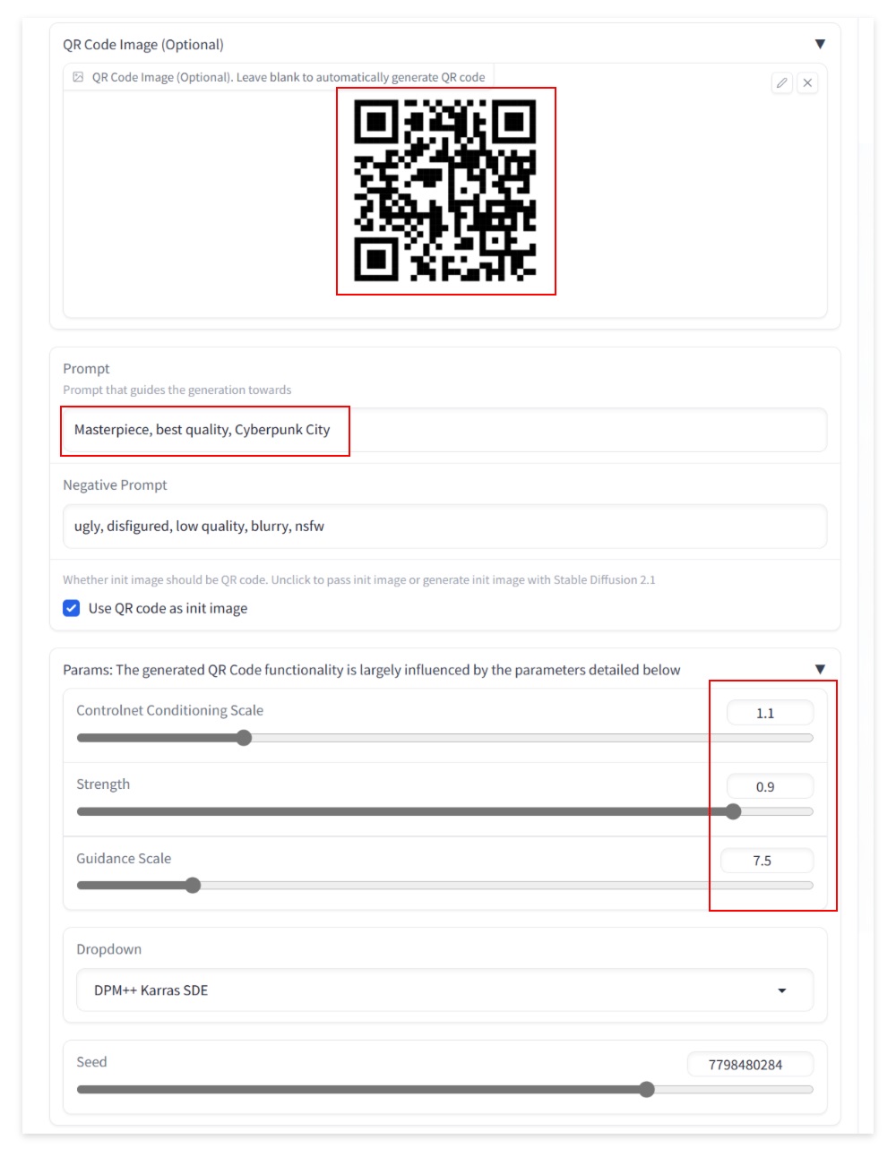 然后点击生成,等到图像完成后用手机扫描查看图象是否有效。如果无效,就继续对 Control Weight、Starting Control Step、Ending Control Step 三项进行微调。